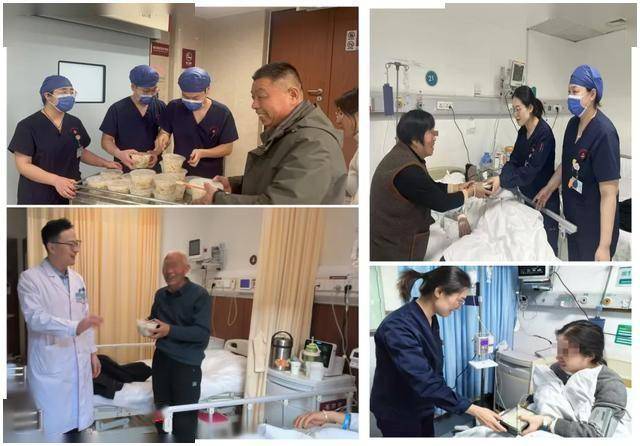 医护人员还为患者和家属送上热气腾腾的饺子,给病情允许、耐受良好的患者喂食饺子。
