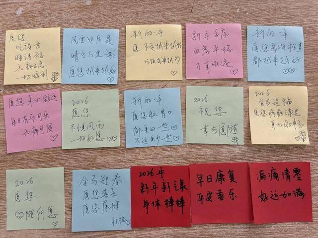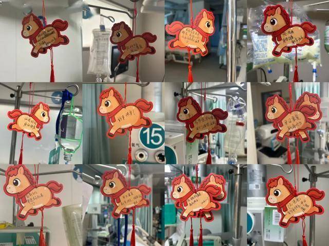 对急诊重症监护室的患者来说,最感动的,是那份特别的“新年红包”——里面装着医护人员手写的满满祝福。在每一位患者的床头,都悬挂着一张手写的爱心贺卡。这是科室精心策划的“温情传递”。医护人员邀请探视家属,将平日里说不出口的鼓励与爱意写在卡片上。