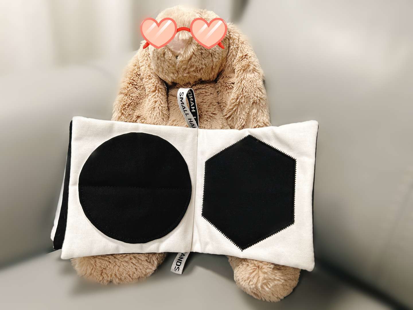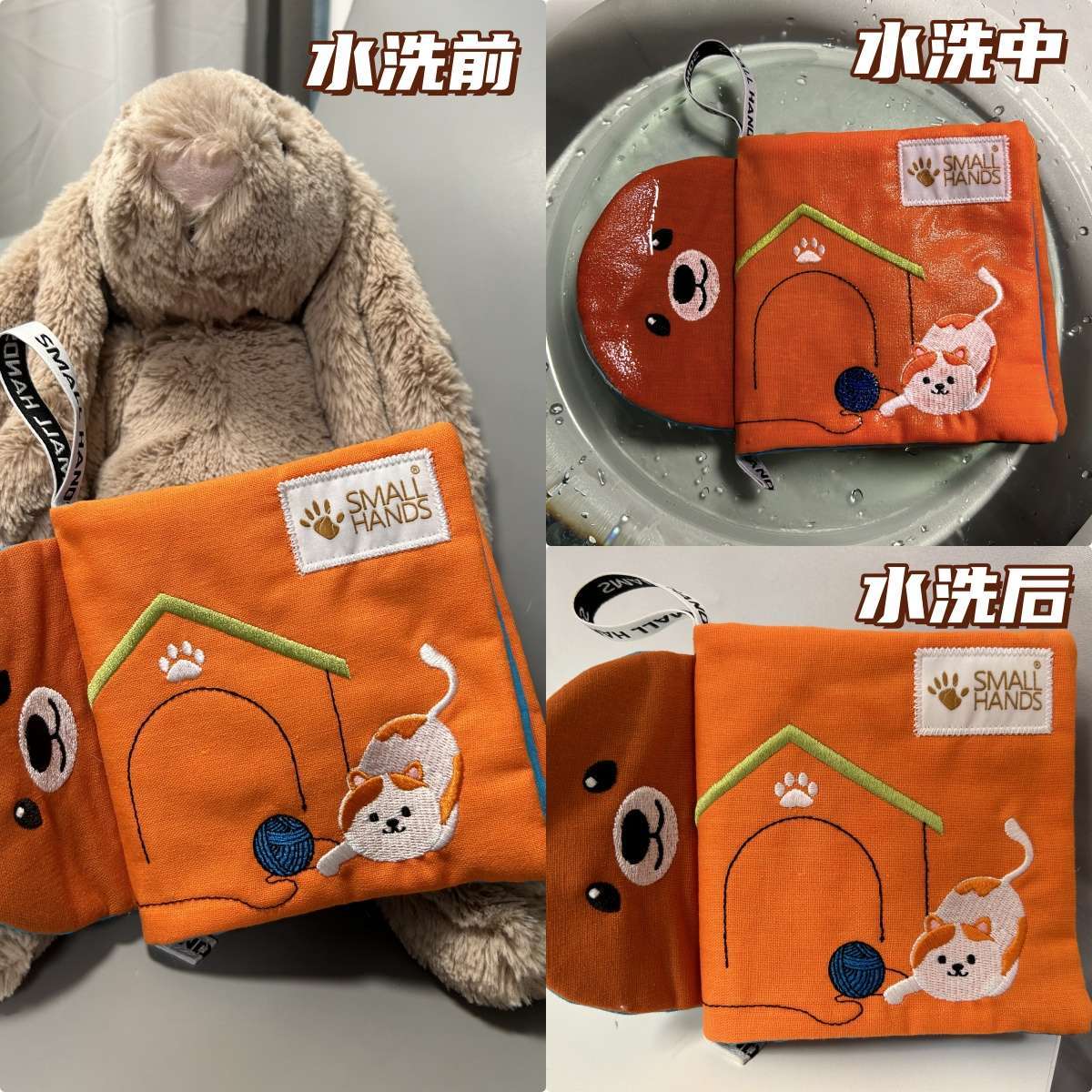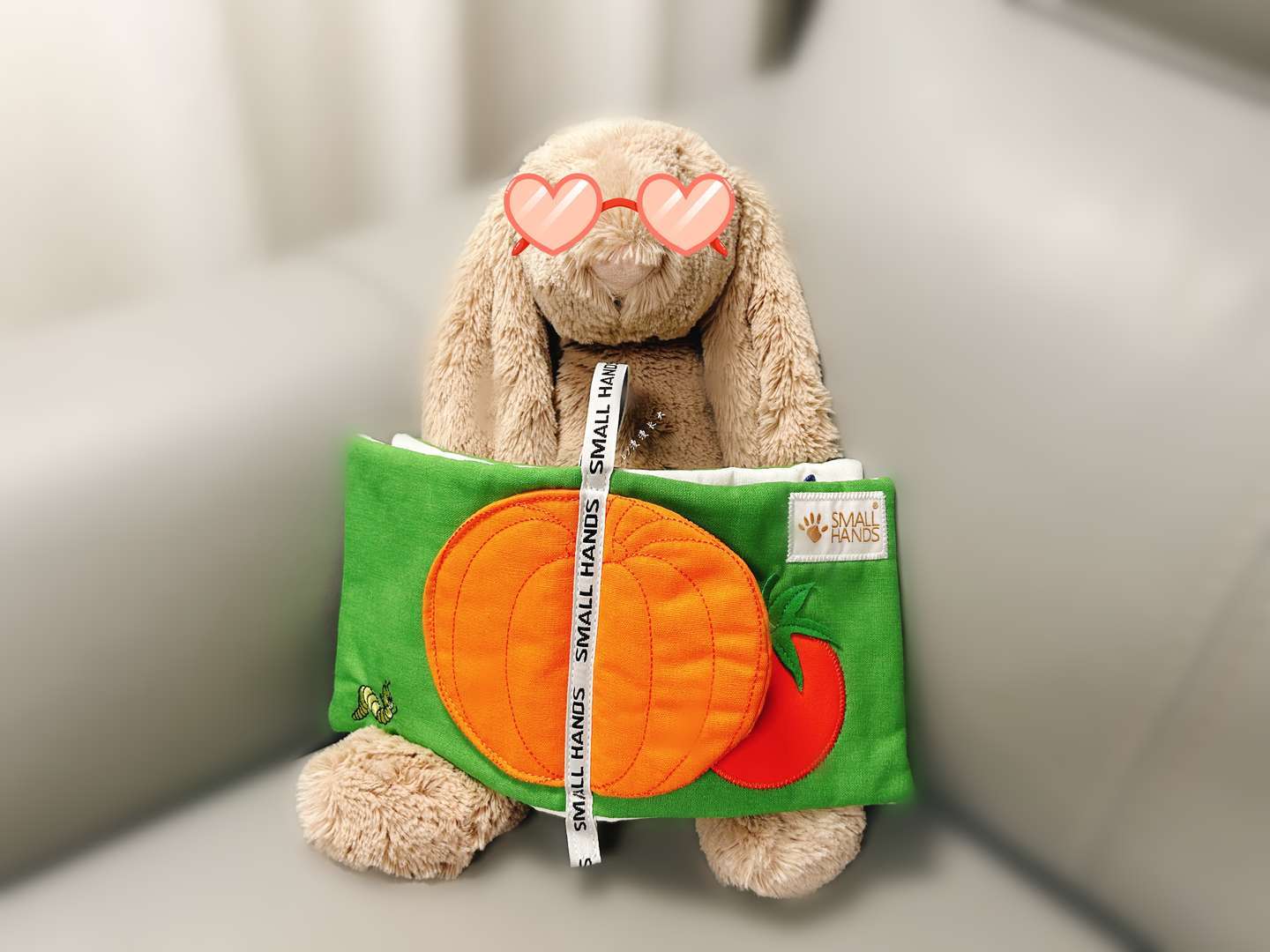 他还热衷于让小兔子看书,还问我他刚出生时是不是和这只小兔子一样大。那当然不了,起码还是比兔子大一圈的(*/ω\*) SMALLHANDS婴儿布书书如其名,宝宝的小手刚刚好拿得住。