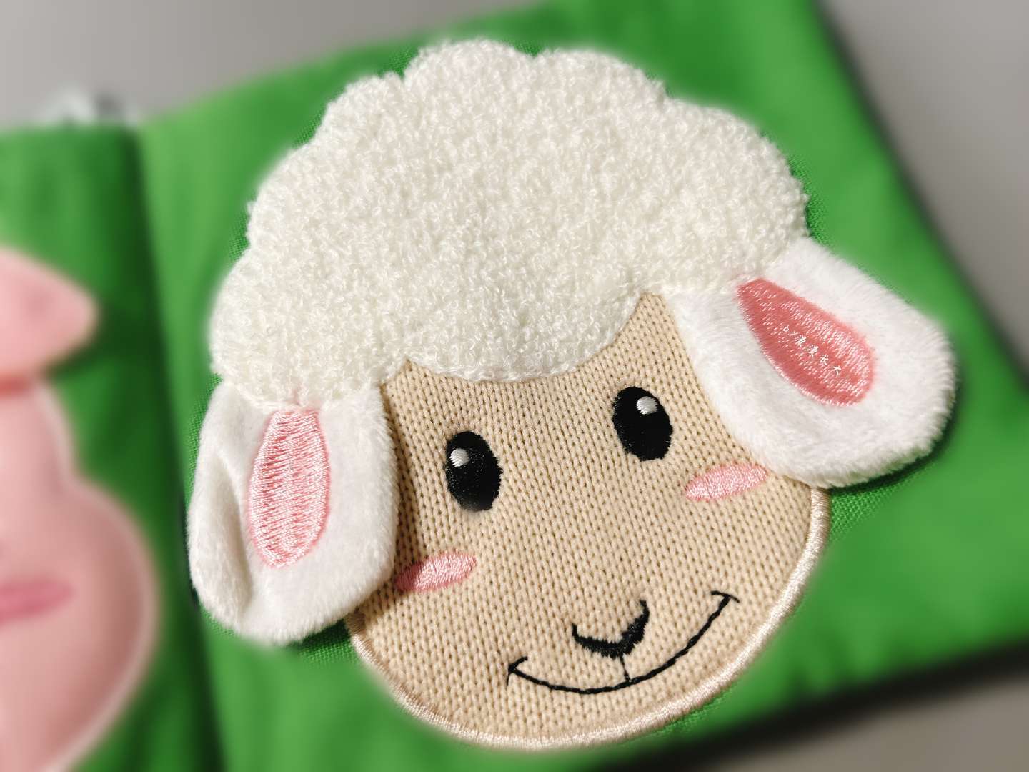 看着简简单单的 SMALLHANDS布书却并不简单,仅仅一个简单的绵羊内页,就包含N多元素组成——有摸起来毛绒绒的头发,捏起来软绵绵的耳朵,摸上去柔中带沙感的小脸,还有各种形状不同方向精致刺绣...这样的设计,正是为了全方位的刺激宝宝的触感。