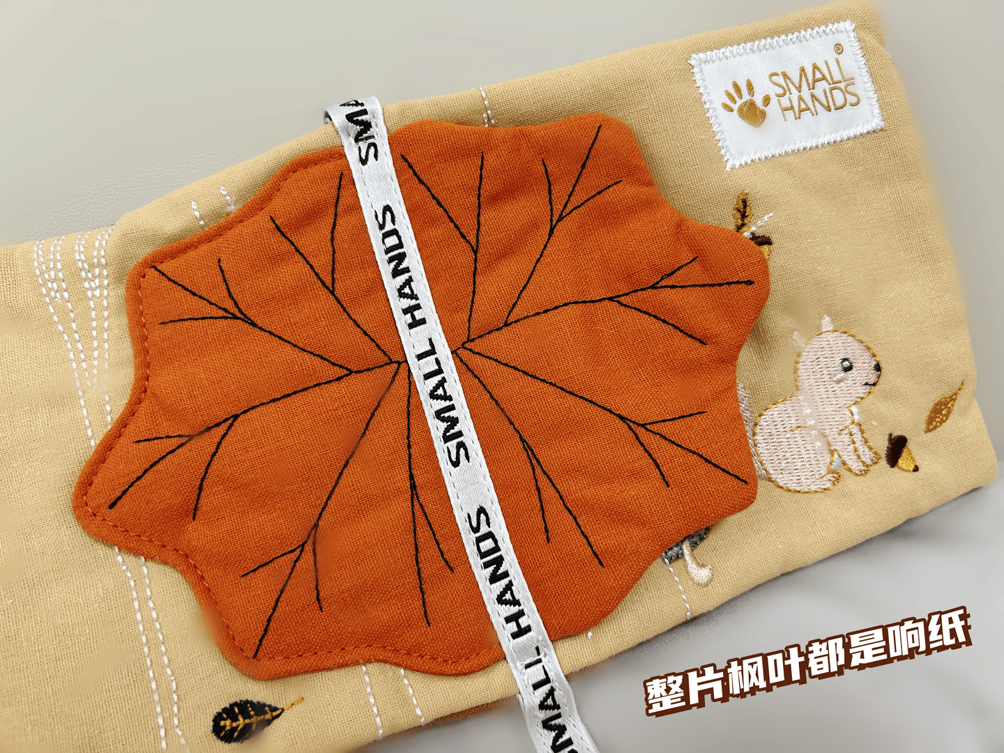 我这套SMALLHANDS买来预备是送我表弟家新成员的,不过即使是我家这么大的宝,也依然被SMALLHANDS俘获了——我家小朋友小时候没有玩过这种布书,我偷偷拆开给他玩了一下,他发现里面不仅多种材质,还有多种小机关↓